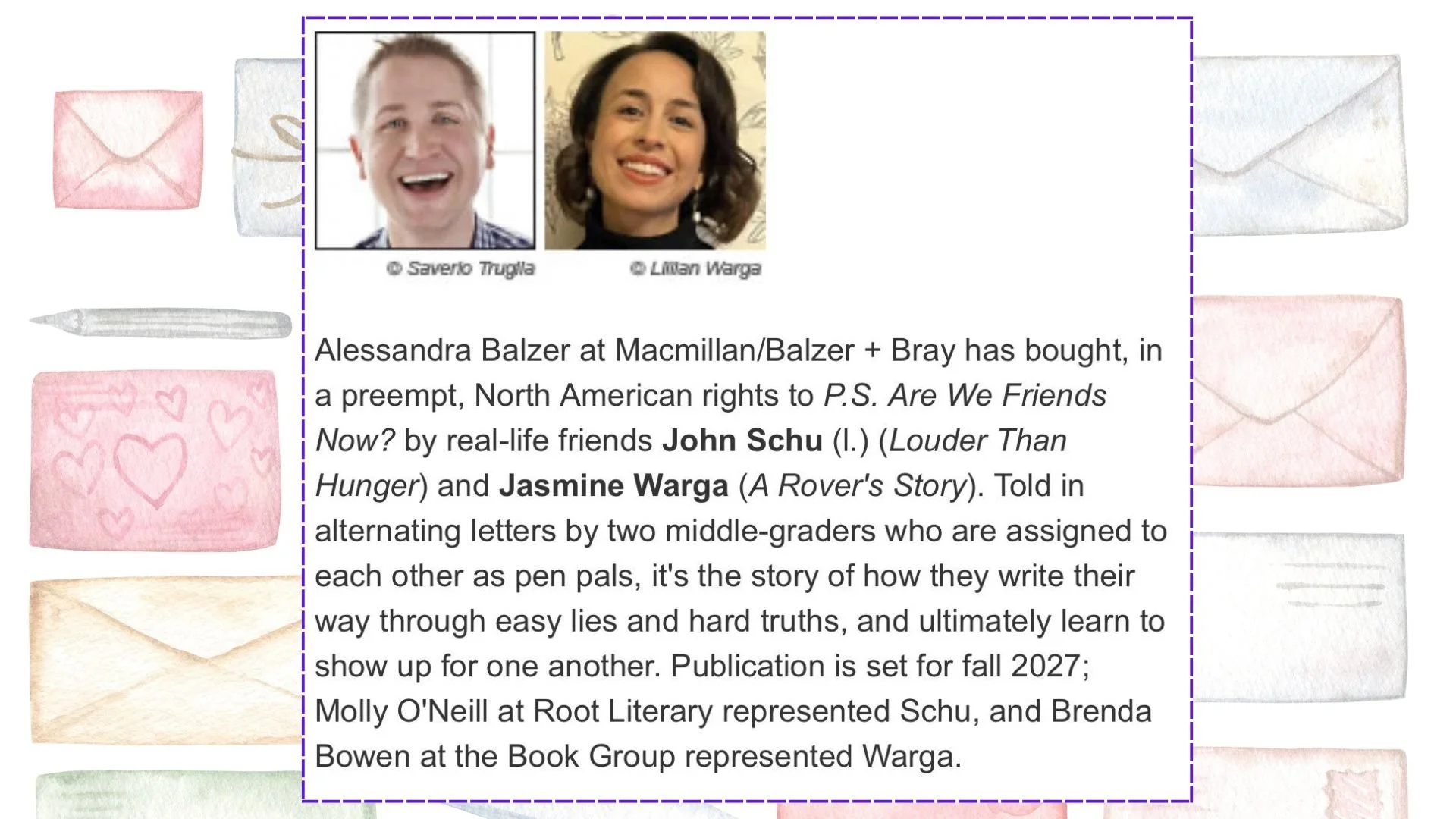 P.S. Are We Friends Now? by John Schu and Jasmine Warga will release in Fall 2027.